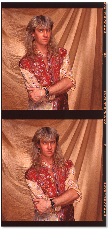 Color negative strips of Joe Elliott from 1992. From the collection of Def Leppard.