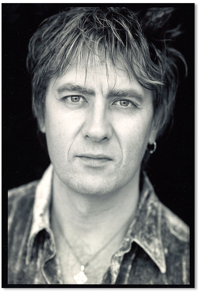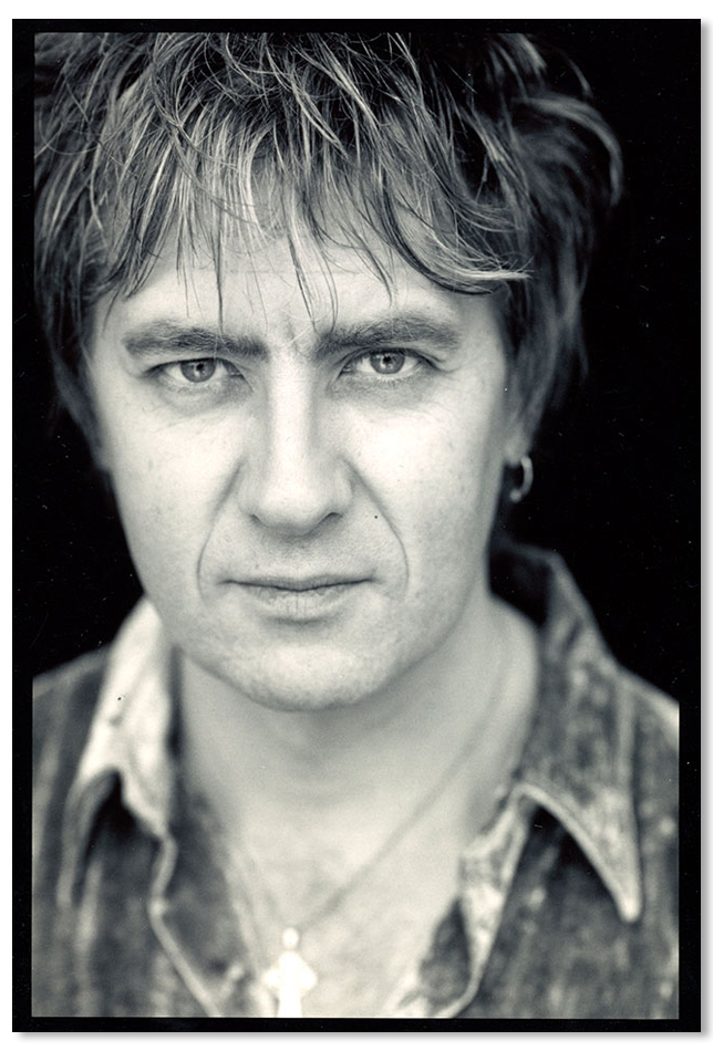 Black and white promotional photo of Joe Elliott for Mercury Records 1993. From the collection of Def Leppard.