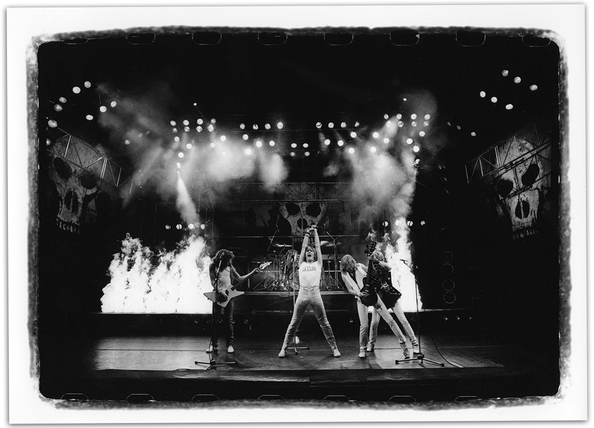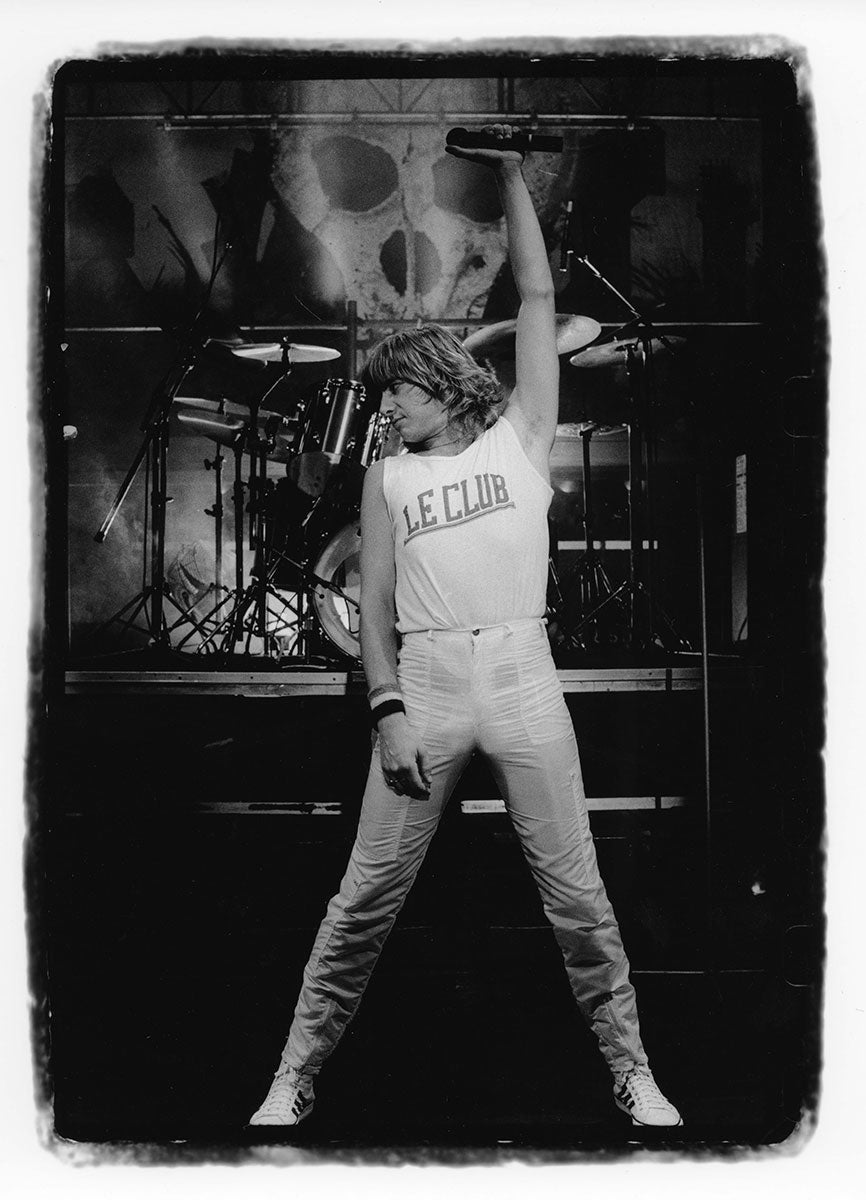 The fog machine is engaged and Rick is ready to rock the Pyromania Tour, circa 1983. From the Collection of Def Leppard.