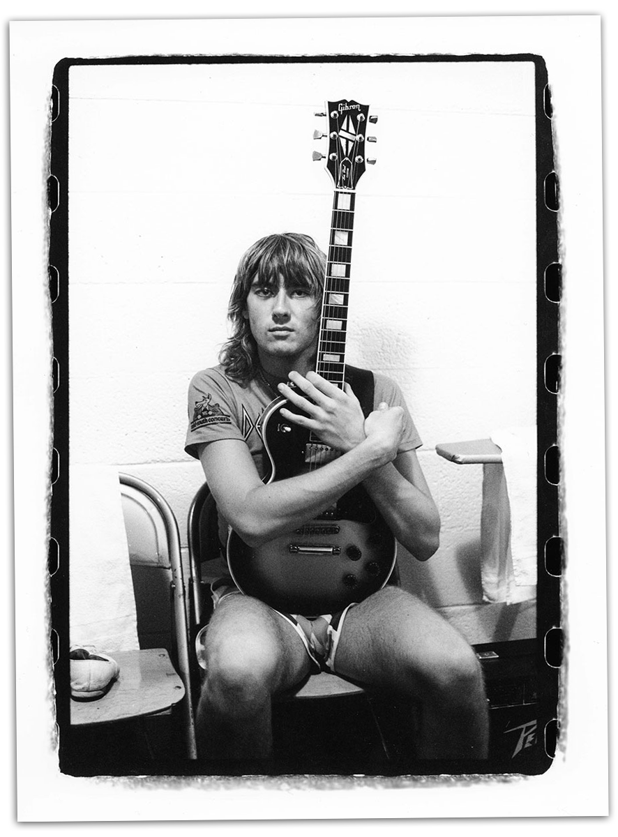 A very fresh-faced Steve Clark waits backstage at a stop on the Pyromania Tour, circa 1983. From the Collection of Def Leppard.