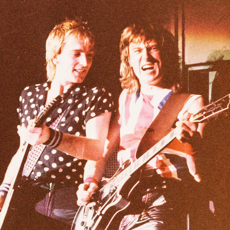 Phil and Joe perform on the Pyromania Tour, circa 1983. From the Collection of Joe Elliott.
