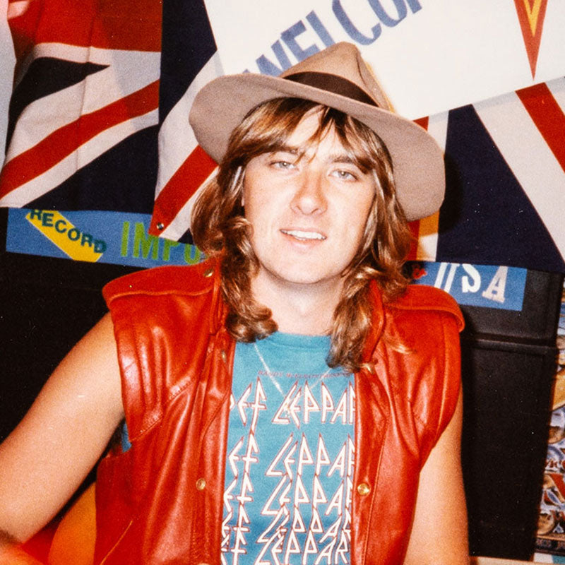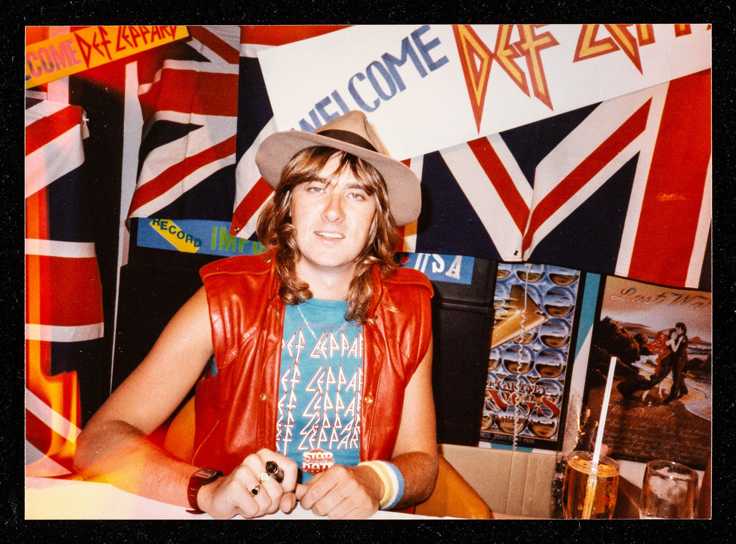 In preparation for Def Leppard's first tour to Japan, Joe and Phil went on a quick promotional visit with then manager Cliff Burnstein. Here, Joe sits ready to sign at a fan event, Rock-Za, Tokyo, Japan, 27 September 1983. From the Collection of Joe Elliott.