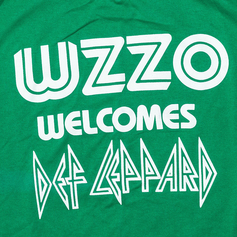 Joe's personal green WZZO Welcomes Def Leppard jersey. The inside tag is marked with a "J". Def Leppard played a charity soccer match against radio station WZZO's "Killer Z" team at the J. Birney Crum stadium in Allentown, Pennsylvania, 1983. The band won 3-2, with all three goals by Joe. From the Collection of Joe Elliott.