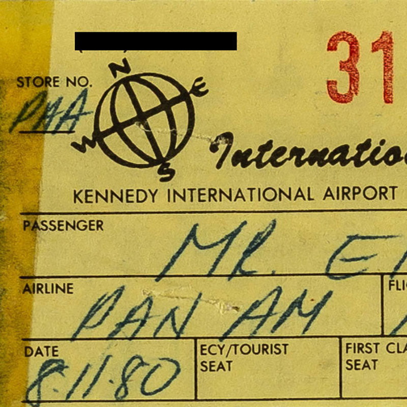 Joe's duty-free shop ticket from International Shoppes, Inc., Kennedy Airport, New York, 11 August 1980. Def Leppard was en route back to London after the band’s first tour to the United States. From the Collection of Joe Elliott.
