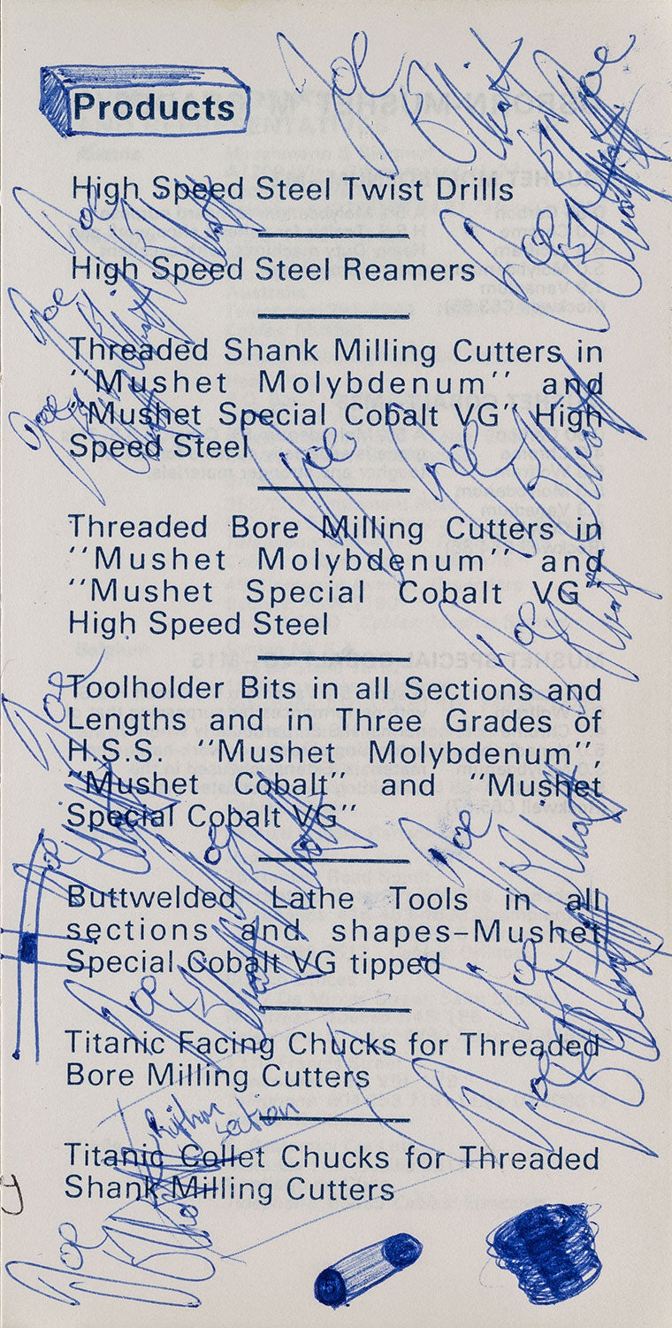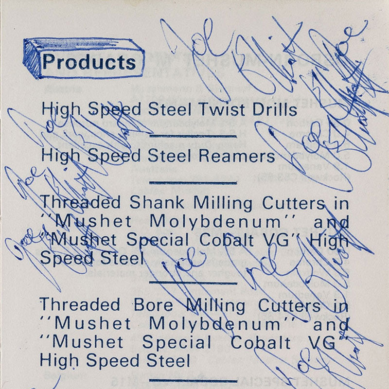 Joe practices his autograph on a page from his diary, 1979. Joe's diary was branded Osborne-Mushett Tools, the steel factory he worked for from age 15 through 19. He was sacked for playing cricket in the basement and breaking a window. Luckily, he was able to negotiate a redundancy settlement with which he purchased a P.A. for the band. From the Collection of Joe Elliott.