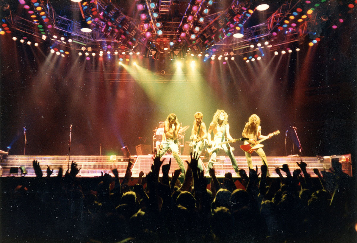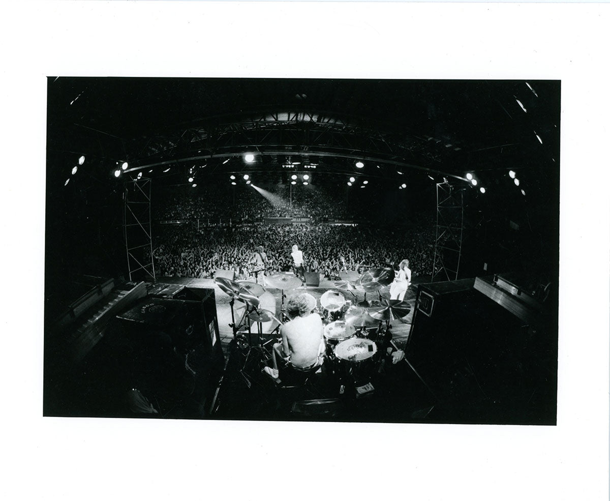 See it how Rick Allen saw it - a drummer's view of the 1983 Pyromania Tour, fame blasting off full-tilt, and a gig bursting with screaming, clapping, dancing fans. An incredible night captured forever in this glorious black and white photo print. Courtesy of the Lorelei Shellist Private Collection.