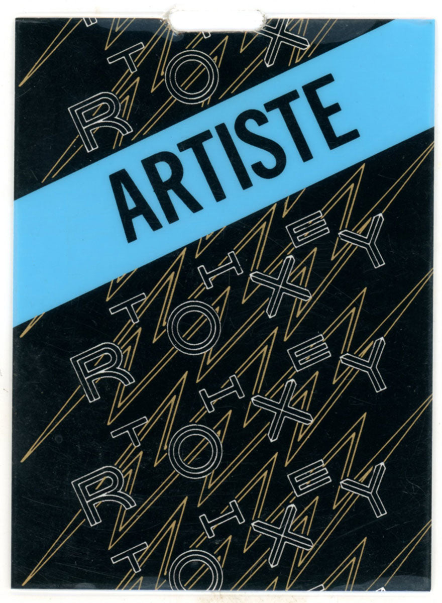 Steve Clark's laminate pass from Def Leppard's appearance on the UK television show "The Roxy," 28 July 1987. The band performed their recently released single "Animal," for this program which mirrored the Top of the Pops format. "The Roxy" appearance marked Rick Allen's first television performance since his car accident in 1984. "The Roxy" also gave a boost to the Leppard's UK fanbase. Huge in America wasn't enough for the UK, and it took several television appearances like this one to finally get hometown folks to notice their very own rock legends in the making. Courtesy of the Lorelei Shellist Private Collection.