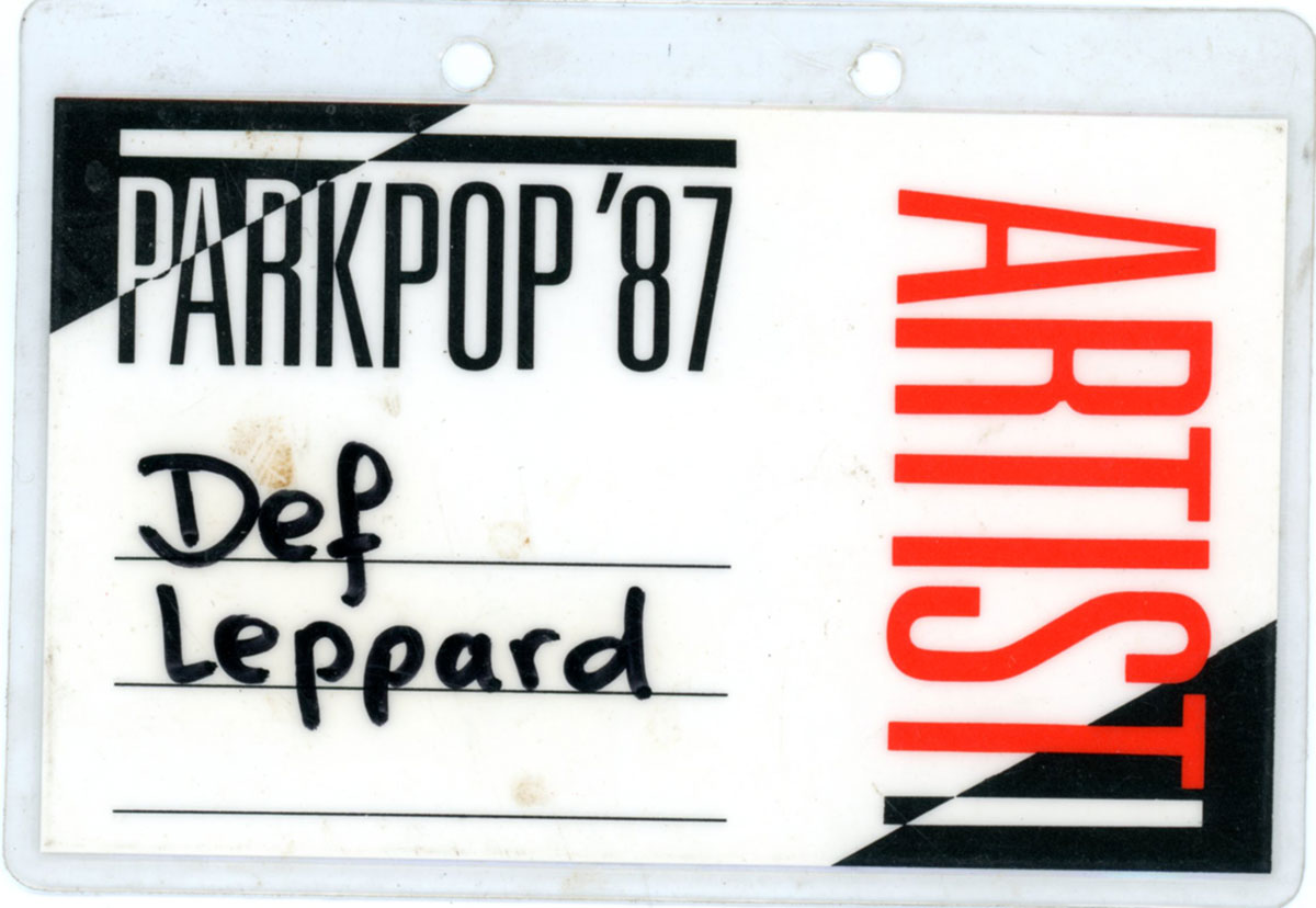 Steve Clark's All-Access laminate pass for the Parkpop Festival in DenHaag, Holland on 28 June, 1987. The band played 2nd stage at this outdoor free festival as a warm-up to the Hysteria tour. Courtesy of the Lorelei Shellist Private Collection.