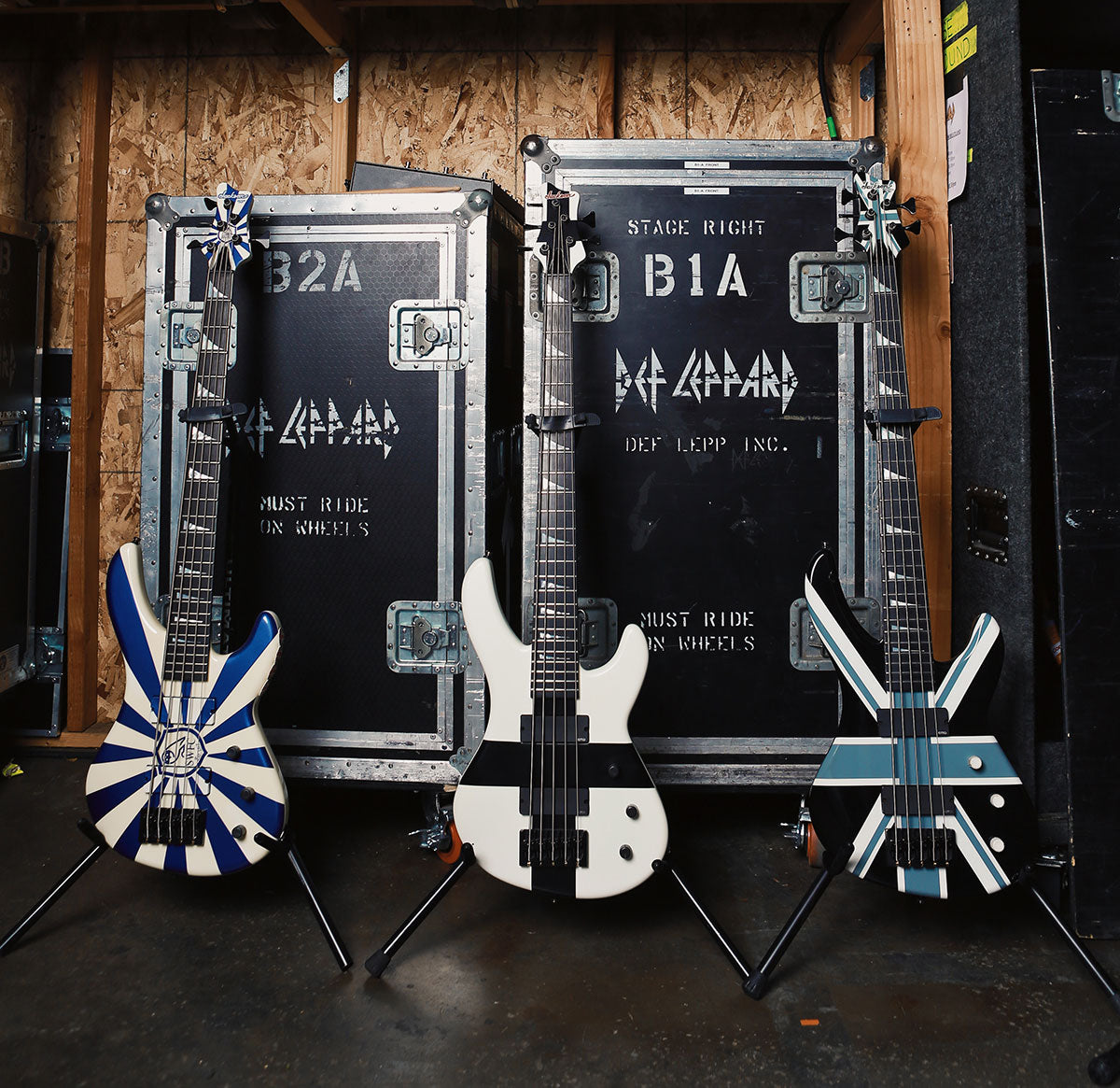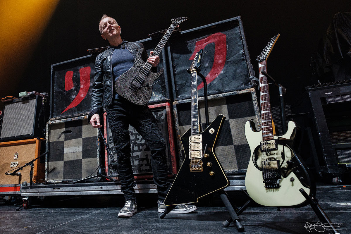 Phil with 3 of his classic guitars - Crackle, the Destroyer, and Bela. This was shot on the UK tour in the winter of 2018.