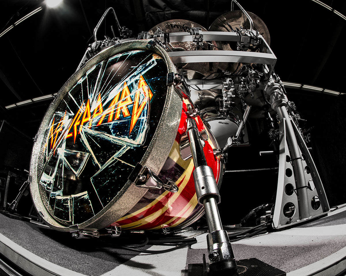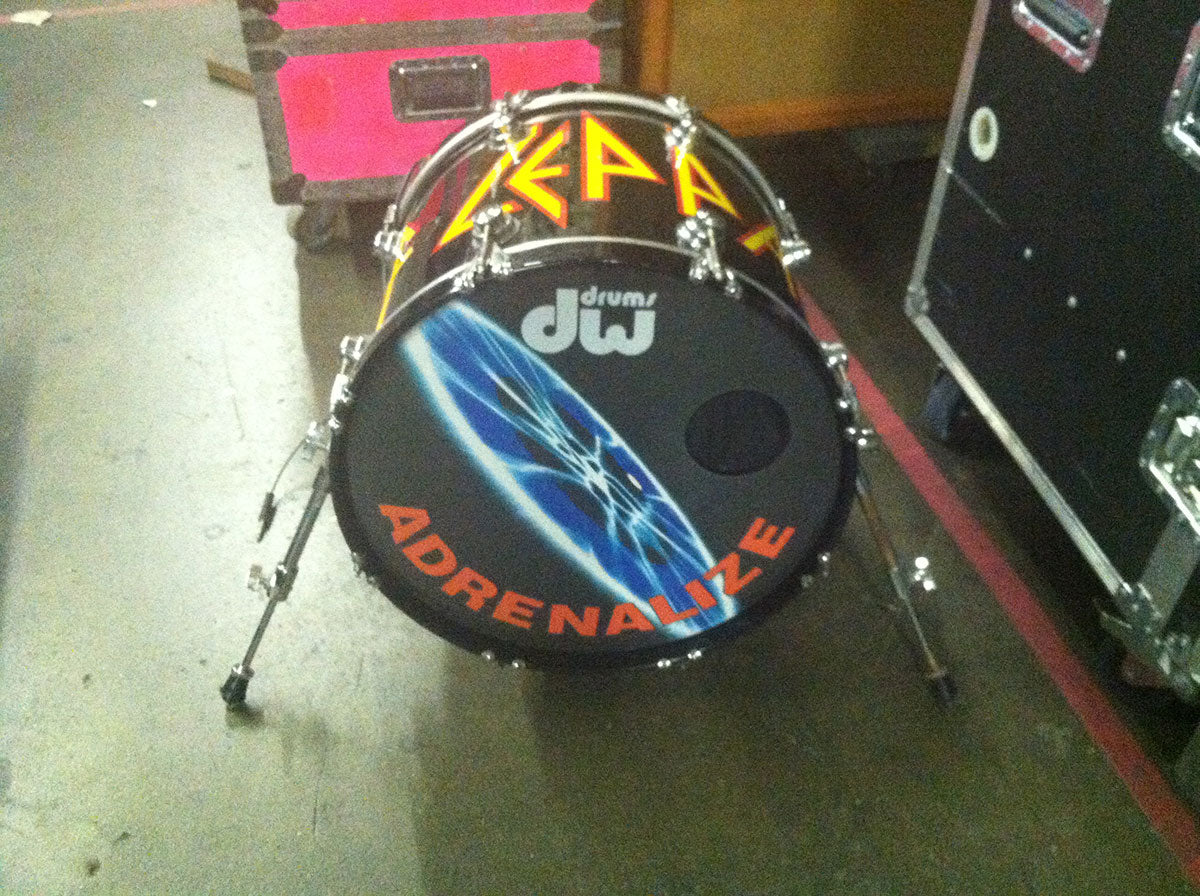 From the Seven Day Weekend tour (the tour behind the Adrenalize record) Rick had a long relationship with DW Drums and still has several of his old kick drums and snares in his studio.