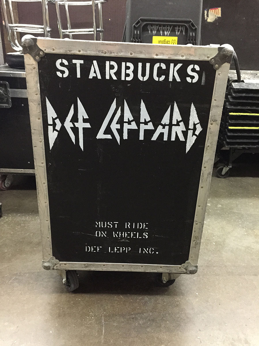 Yes, Rick’s roadie does indeed travel with an espresso cart. Affectionately named, STARBUCKS, the case can often be found upstage center, behind the drum kit. and occasionally in use during a show if it’s a very long day.