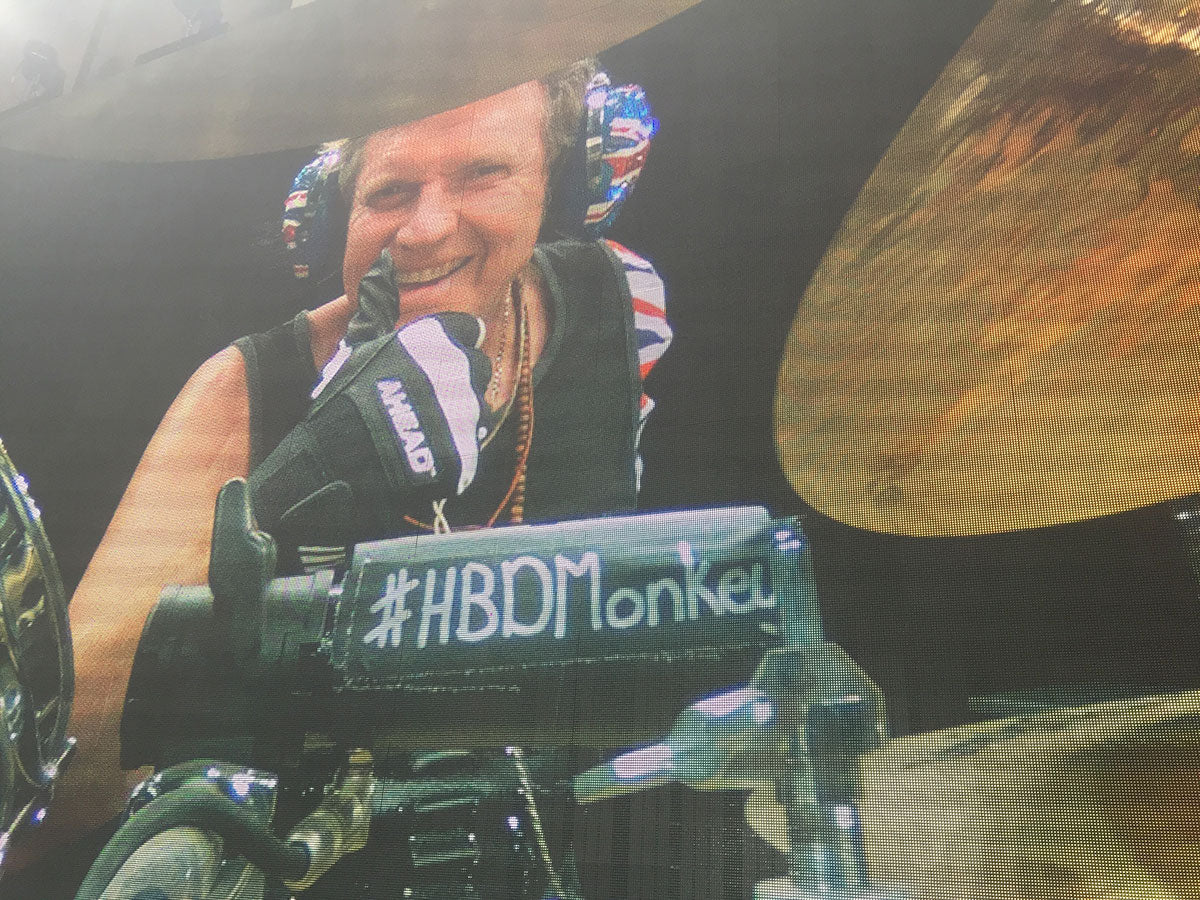 On the 2015 tour, Rick realized that his Pintech “cowbell” could be seen every night after his drum solo and started adding fun hashtags and messages for each and every show.