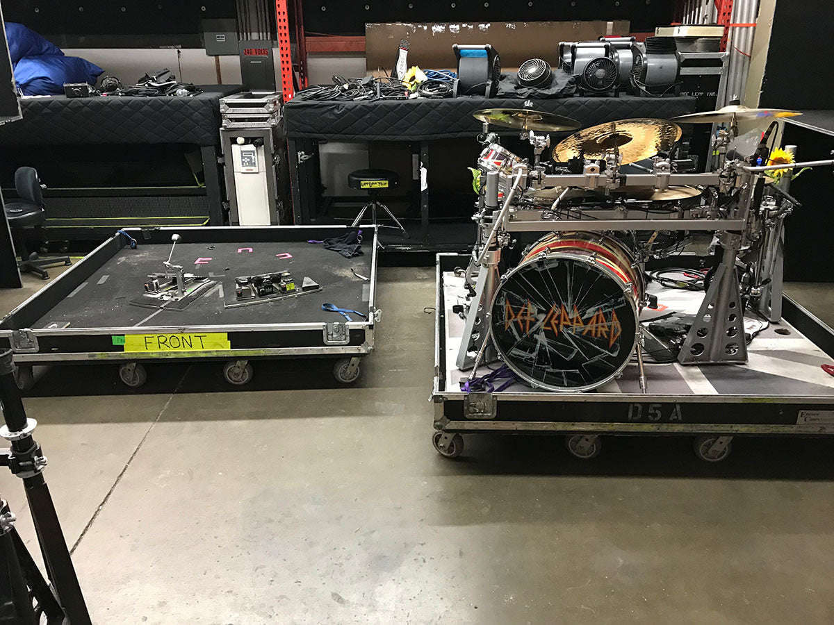 Like a lot of bands, Def Leppard has multiple touring rigs. To facilitate the 2015 world tour, the crew created a “fly rig”. The C Rig, as it is known, is a completely stripped down version of the A and B systems with the barest of minimums needed to pull off a show. Designed to fit into one airline shipping pallet, the kit always sits, taped off and ready to go at moment’s notice.
