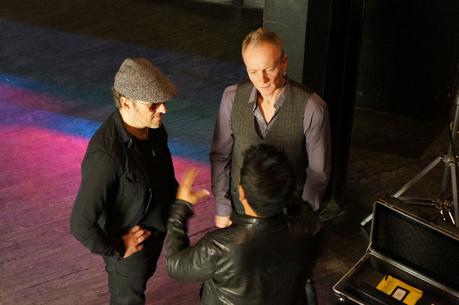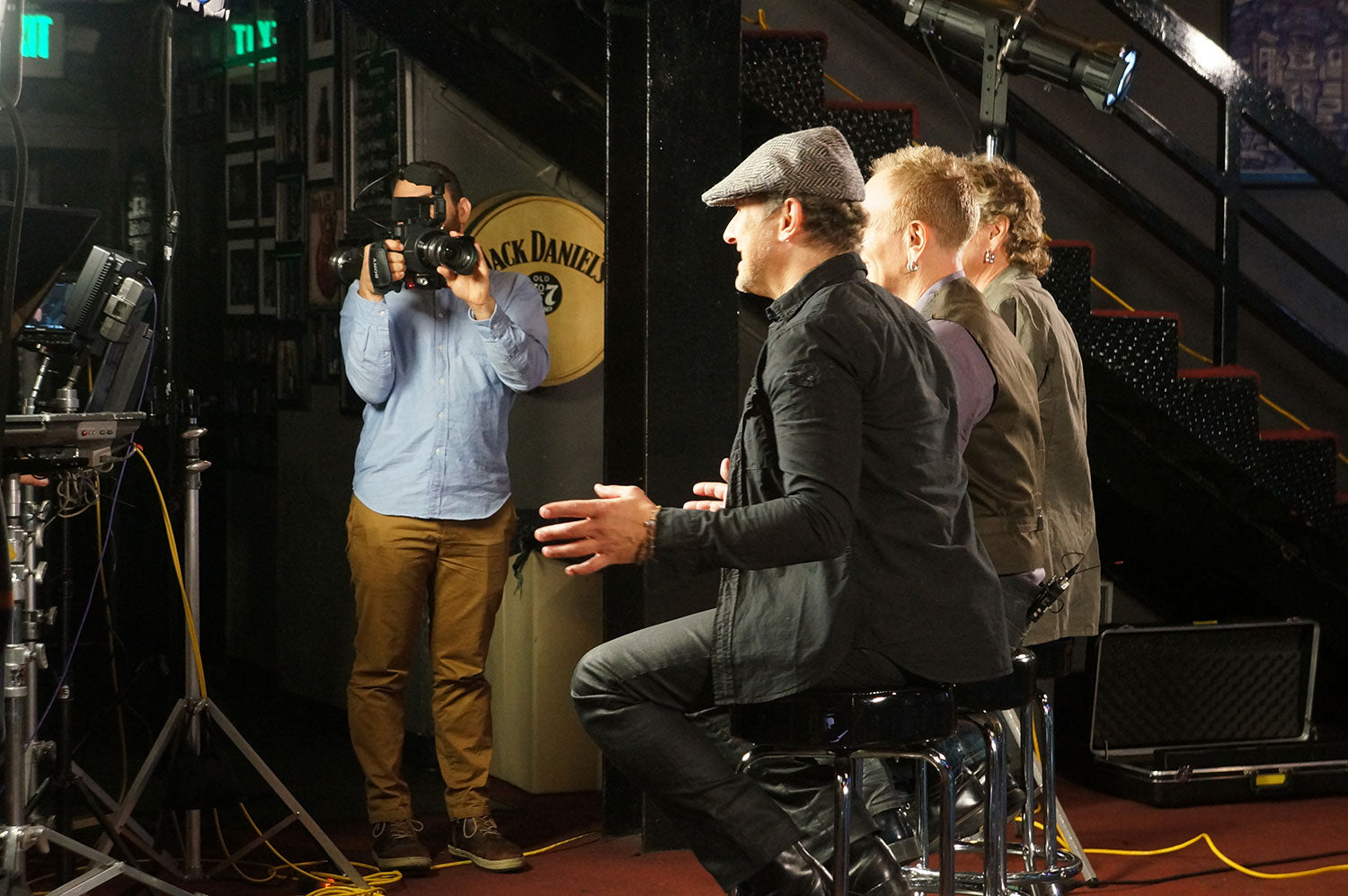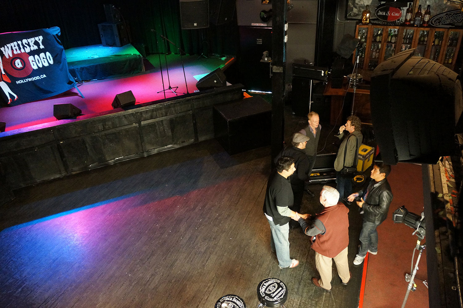 Vivian Campbell, Phil Collen, and Rick Allen speak with Mike Kobayashi and the video team in preparation of a promotional interview at the legendary Whisky a Go Go, December 2013. This interview was in support of Viv, Phil, and Rick Allen's appearance on The Voice. From the collection of Phil Collen.