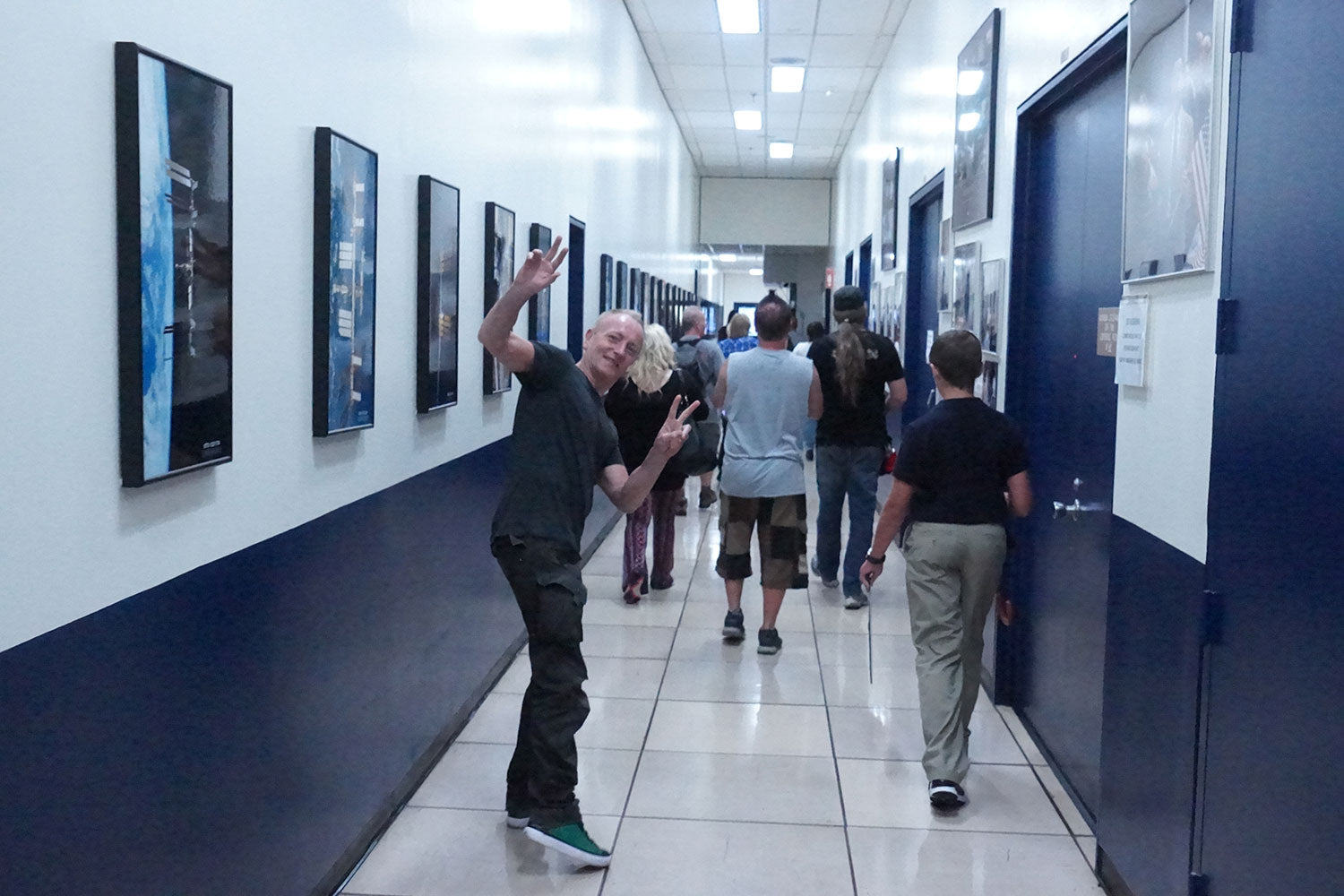 On the 22nd of August 2016, Phil Collen took a guided tour of NASA's Johnson Space Center in Houston, Texas. This day trip took place with members of Tesla who were touring with Def Leppard. Later that night, they would all perform at the Cynthia Woods Mitchell Pavillion. Luckily, we can see in this photo that Phil is all about intergalactic peace, helping ensure the safety of the universe. From the collection of Phil Collen.
