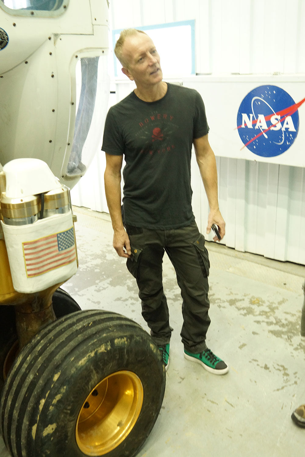 Phil listens carefully whilst on a guided tour at NASA's Johnson Space Center in Houston, Texas, 22nd August, 2016. From the collection of Phil Collen.