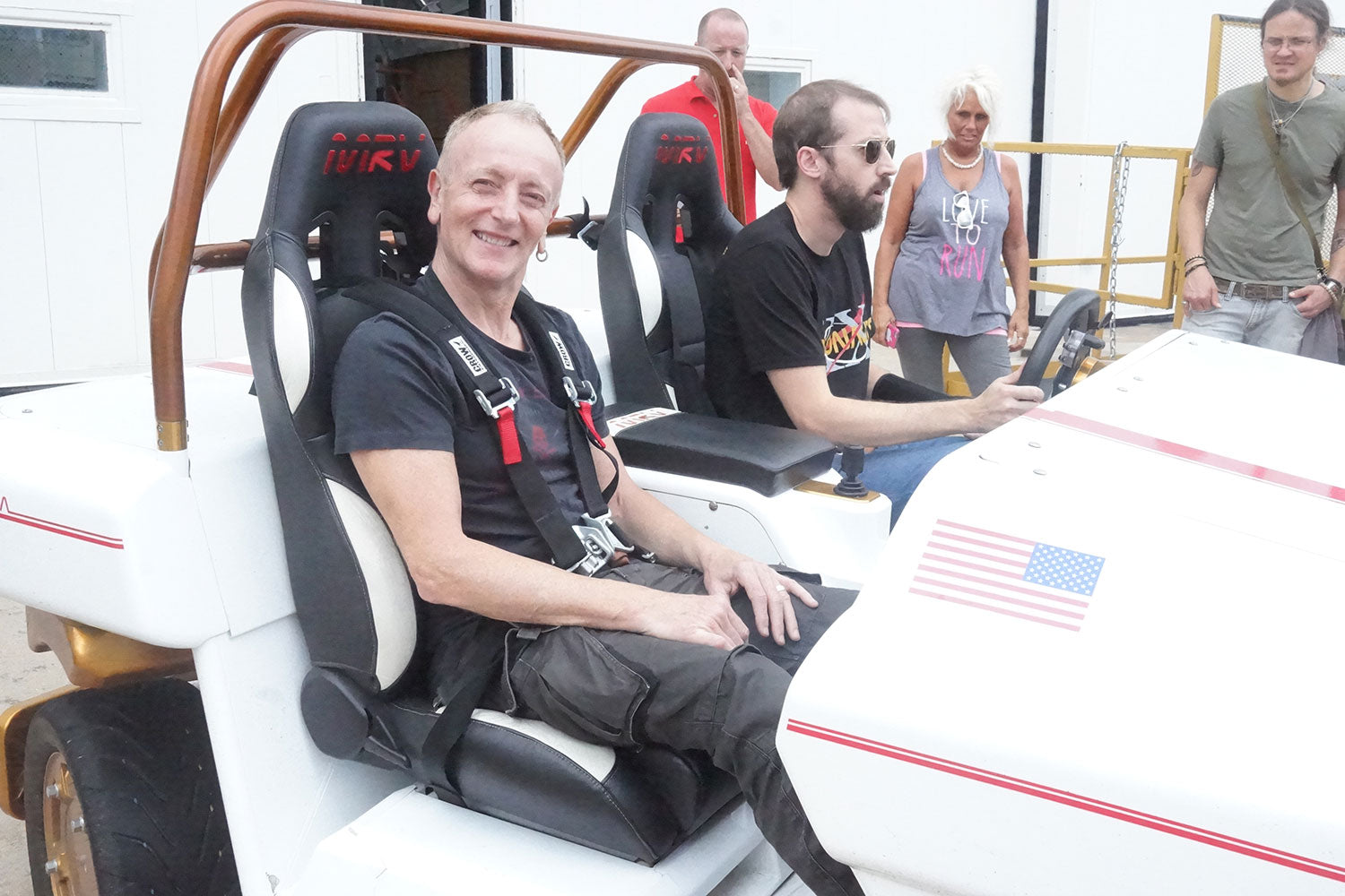 Phil Collen gets a ride in a space vehicle during his guided tour of NASA's Johnson Space Center in Houston, Texas, 22nd August, 2016. From the collection of Phil Collen.