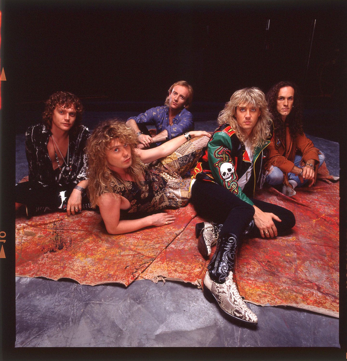 Color negative of an image from a 1992 Adrenalize promotional portrait shoot. From the Collection of Def Leppard.