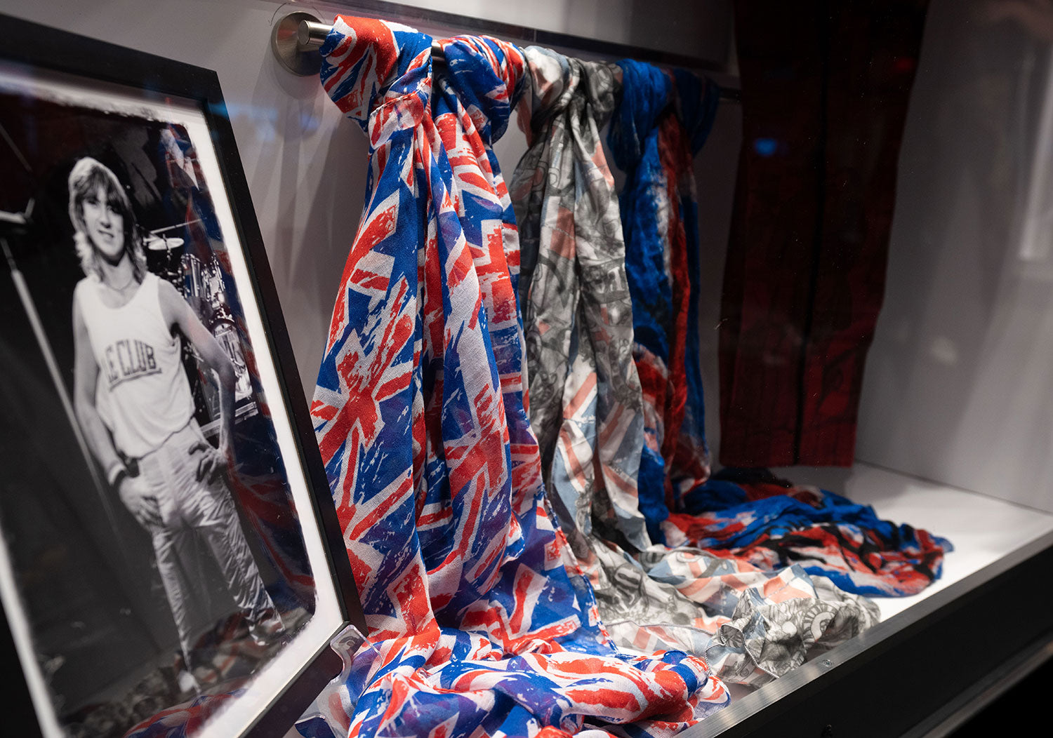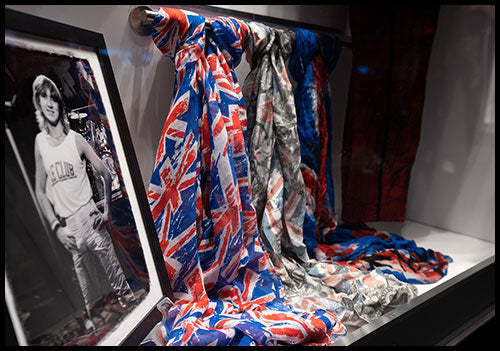 Three scarves that have adorned Joe's mic stand in performances around the world. From the Collection of Joe Elliott.