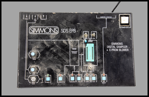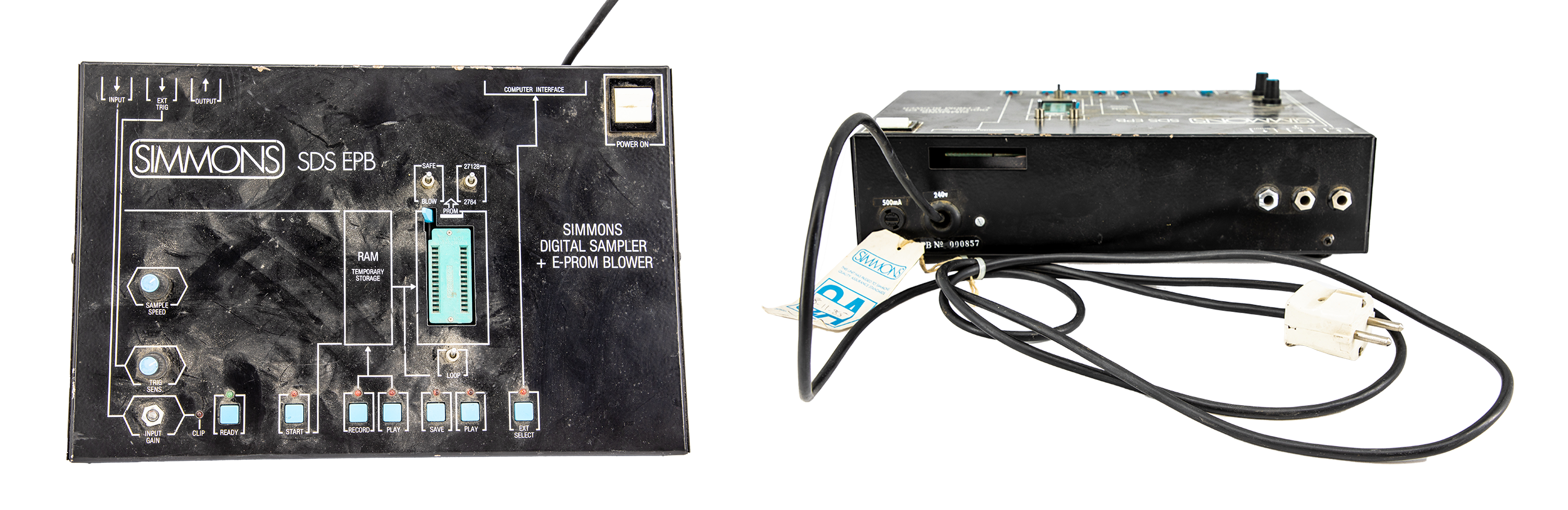 Rick's Simmons Digital Sampler + E-Prom Blower used on tour and in the studio. From the Collection of Rick Allen.