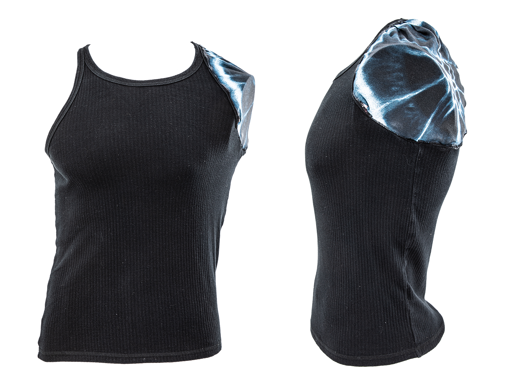Rick's custom Adrenalize art tank, worn on stage. From the Collection of Rick Allen.