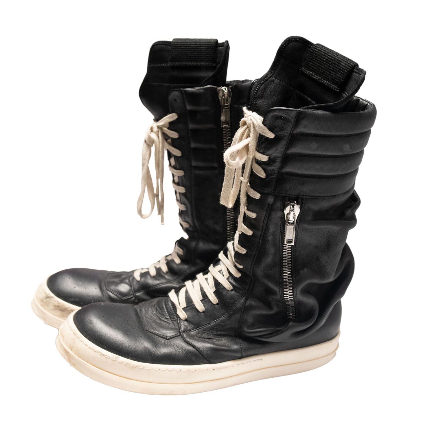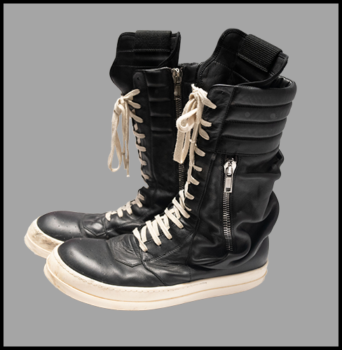 Sav wore these Rick Owens Cargo Basket black leather boots on the 2018 Def Leppard World Tour. From the Collection of Rick Savage.