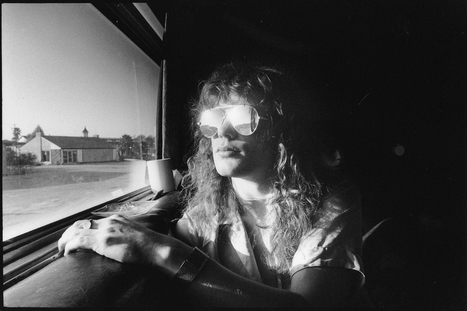 Sav rides the High 'n' Dry Tour bus, 1981. From the Collection Def Leppard.