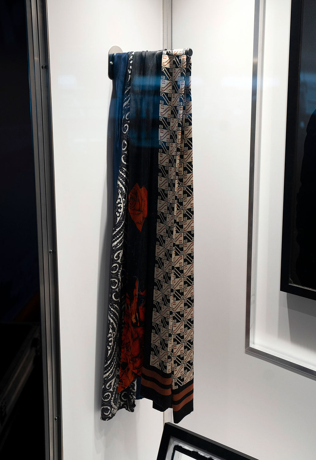 Three of Viv's scarves worn in live performances. From the Collection of Vivian Campbell.
