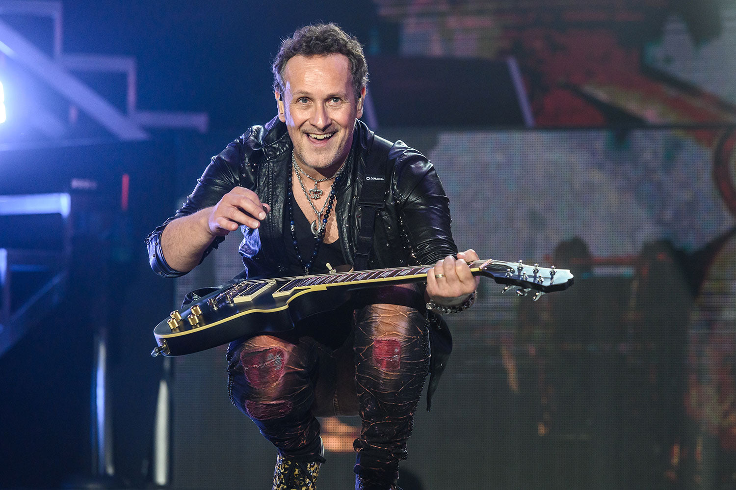 Viv plays his Silver Sparkle Gibson Les Paul on the Def Leppard World Tour, 2018. From the Collection of Def Leppard.