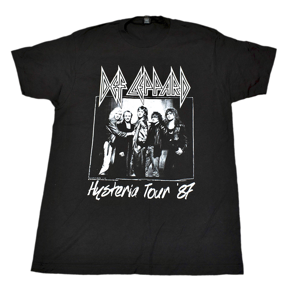 Black Def Leppard merch t-shirt with black and white photo of the band, commemorating the Hysteria Tour, 1987. This shirt was made into the Grand Prize, framed and personalized plaque from the 8/20 SHOW US YOURS contest and presented to Bryce & Heather from Denver. It now resides in their Def Leppard collection!
